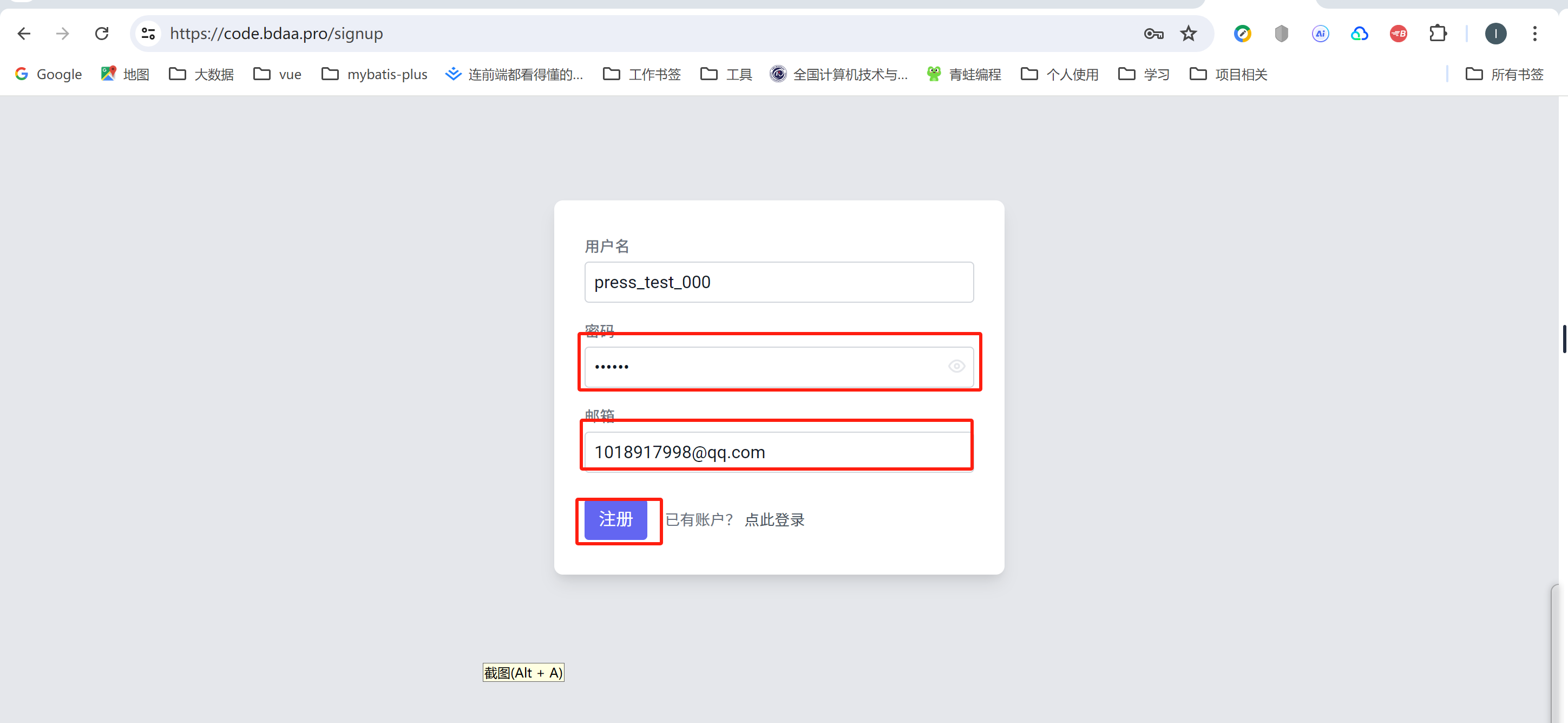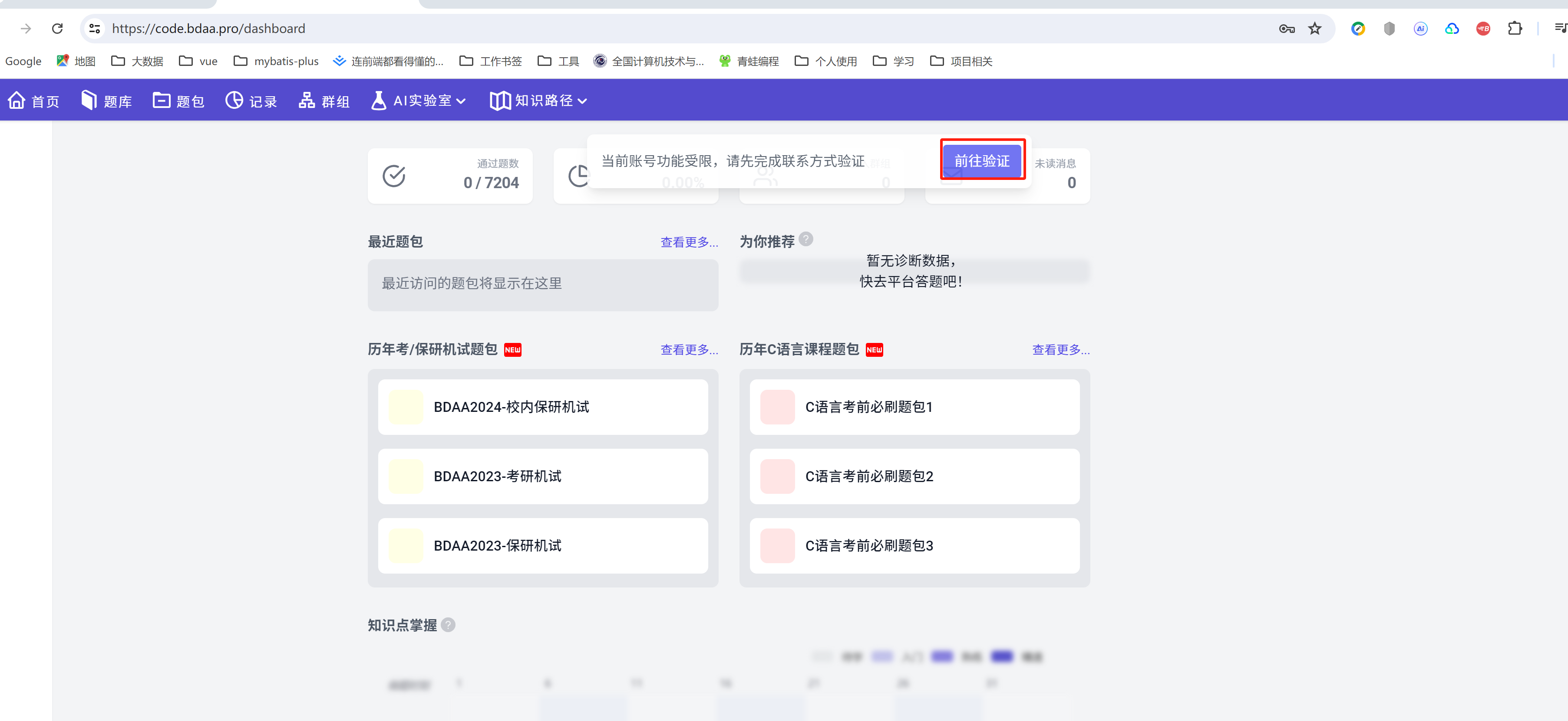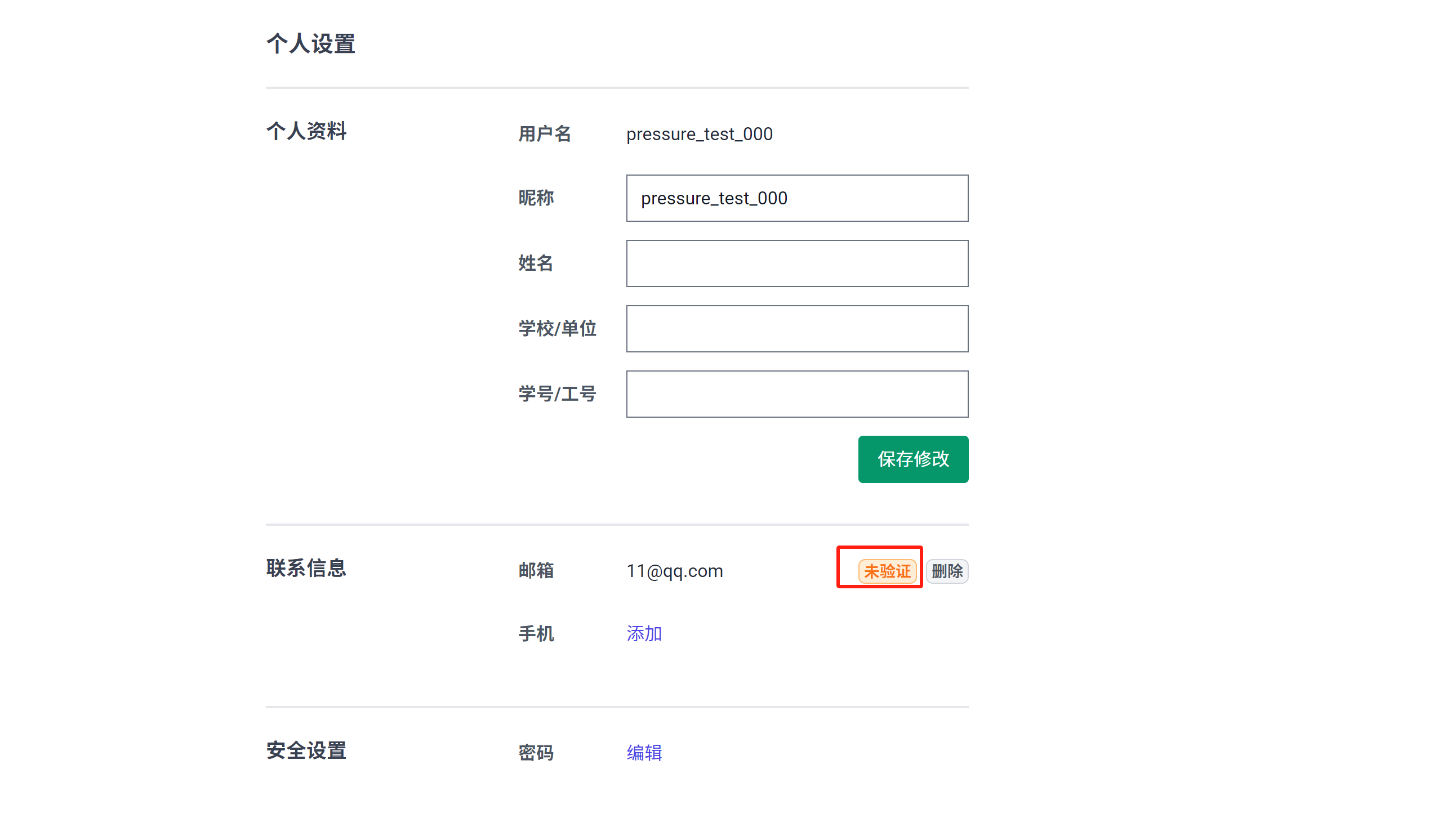 1、输入网址在浏览器输入网址:https://code.bdaa.pro/,并回车打开2、点击注册3、输入相关信息密码统一按1234564、注册完自动登录,然后点击【前往验证】5、点击【未验证】进行验证6、点击【发送验证码】7、输入正确验证码8、点击【验证】,验证通过自动跳到个人设置展示如下表示成功